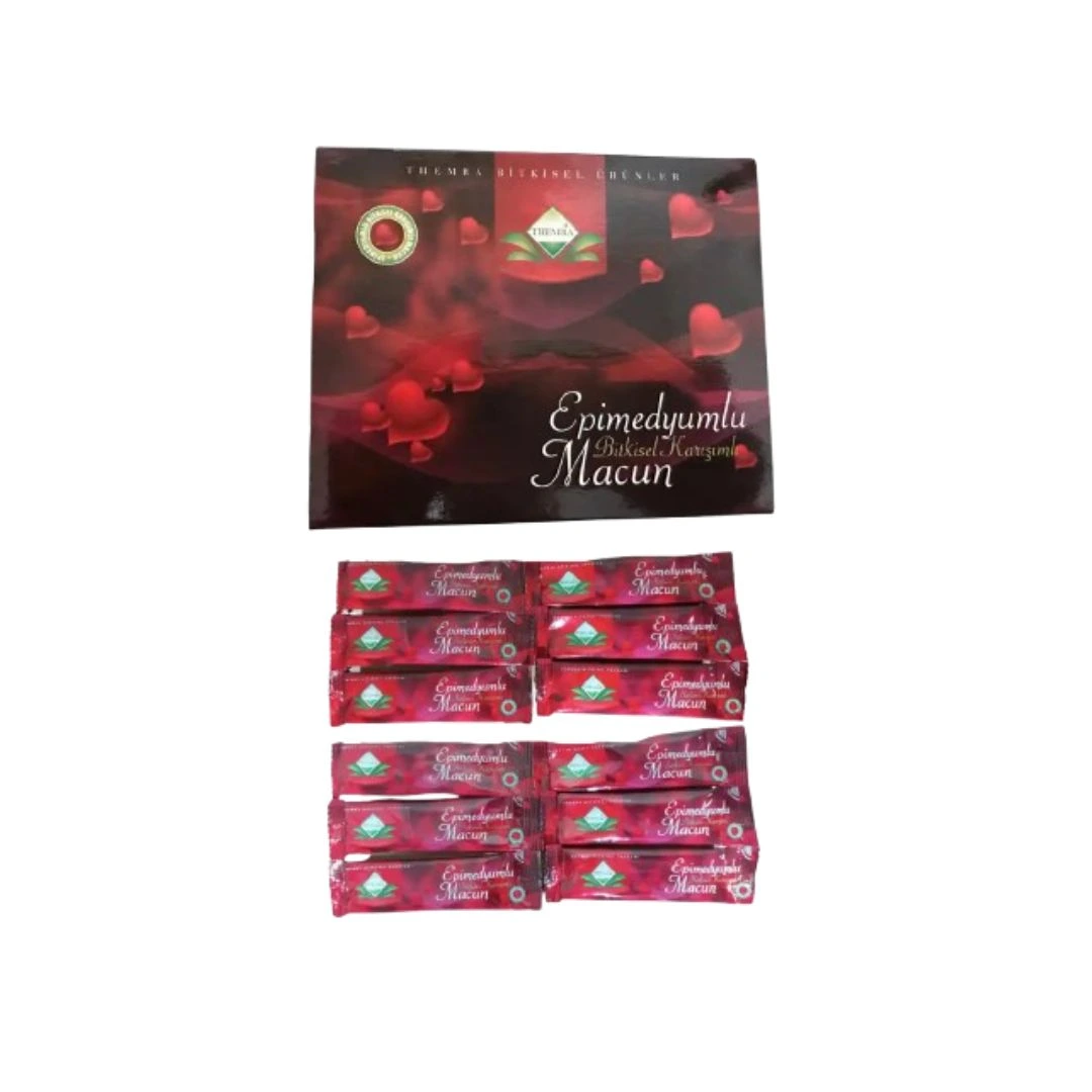 Turski Macun med u kesicama – prirodni afrodizijak za libido i potenciju. Brza upotreba, efekat sličan Kamagri. Pakovanje sadrži 12 kesica.
